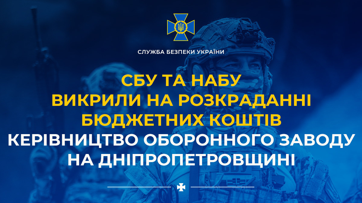 SSU and NABU expose budget funds embezzlement by defence plant management in Dnipropetrovsk region
