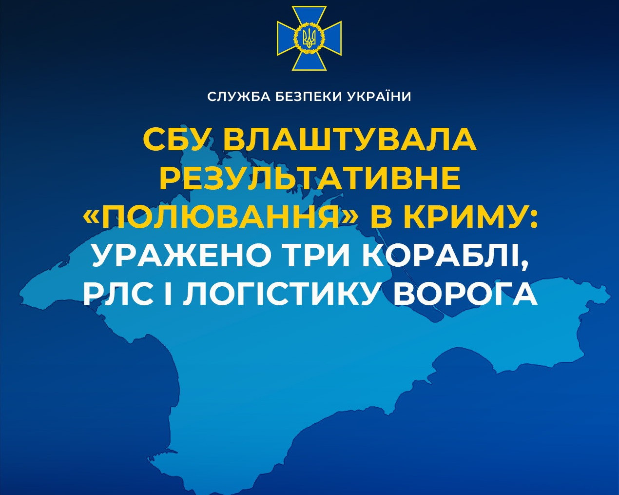 Бійці Центру спецоперацій «Альфа» СБУ провели комплексну операцію на ТОТ АР Крим, під час якої уражено одразу три військових кораблі рф: