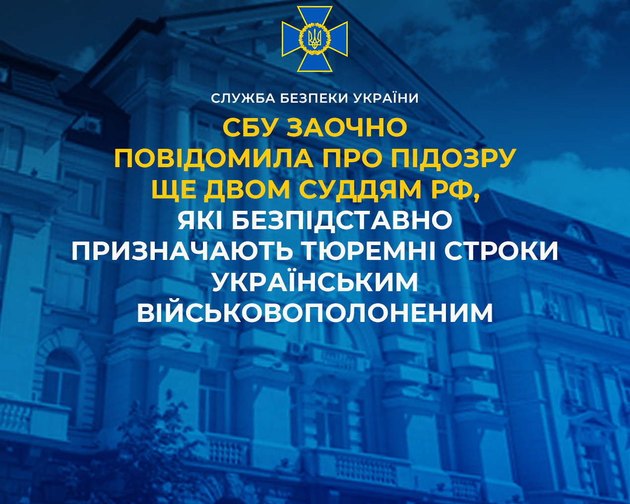 СБУ заочно повідомила про підозру ще двом суддям рф, які безпідставно призначають тюремні строки українським військовополоненим