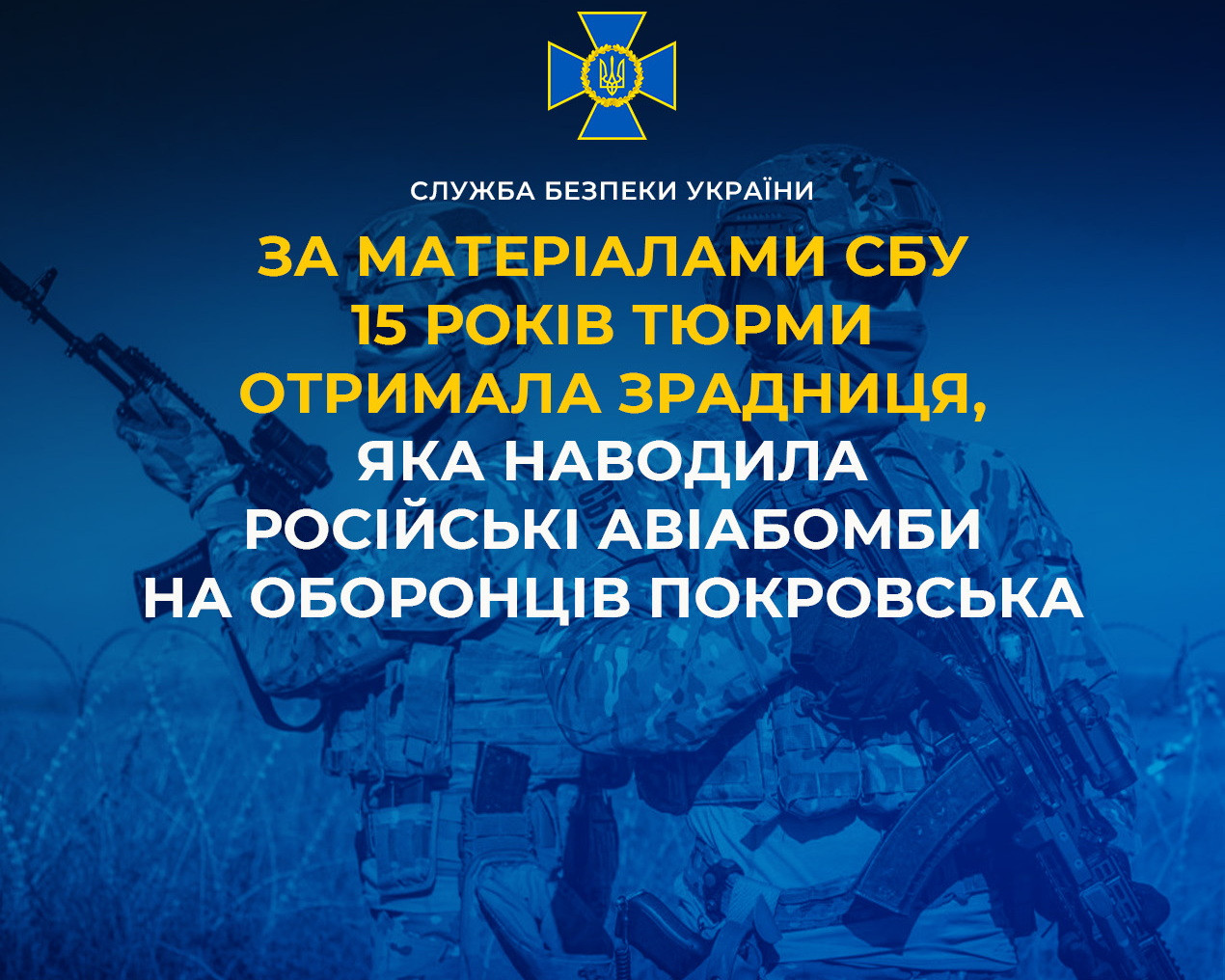 За матеріалами СБУ 15 років тюрми отримала зрадниця, яка наводила російські авіабомби на оборонців Покровська