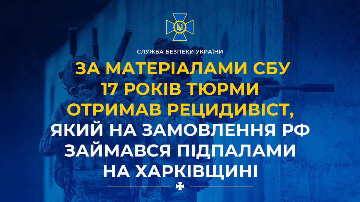 За матеріалами СБУ 17 років тюрми отримав рецидивіст, який на замовлення рф займався підпалами на Харківщині