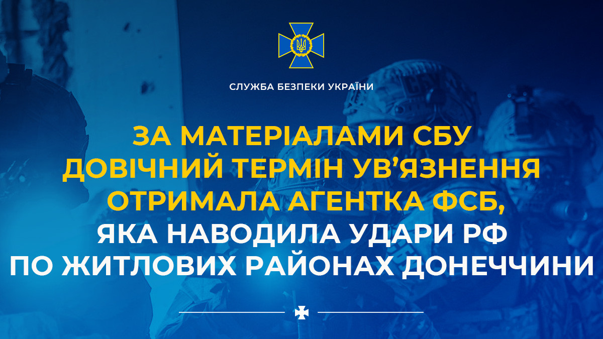 За матеріалами СБУ довічний термін ув’язнення отримала агентка фсб, яка наводила удари рф по житлових районах Донеччини