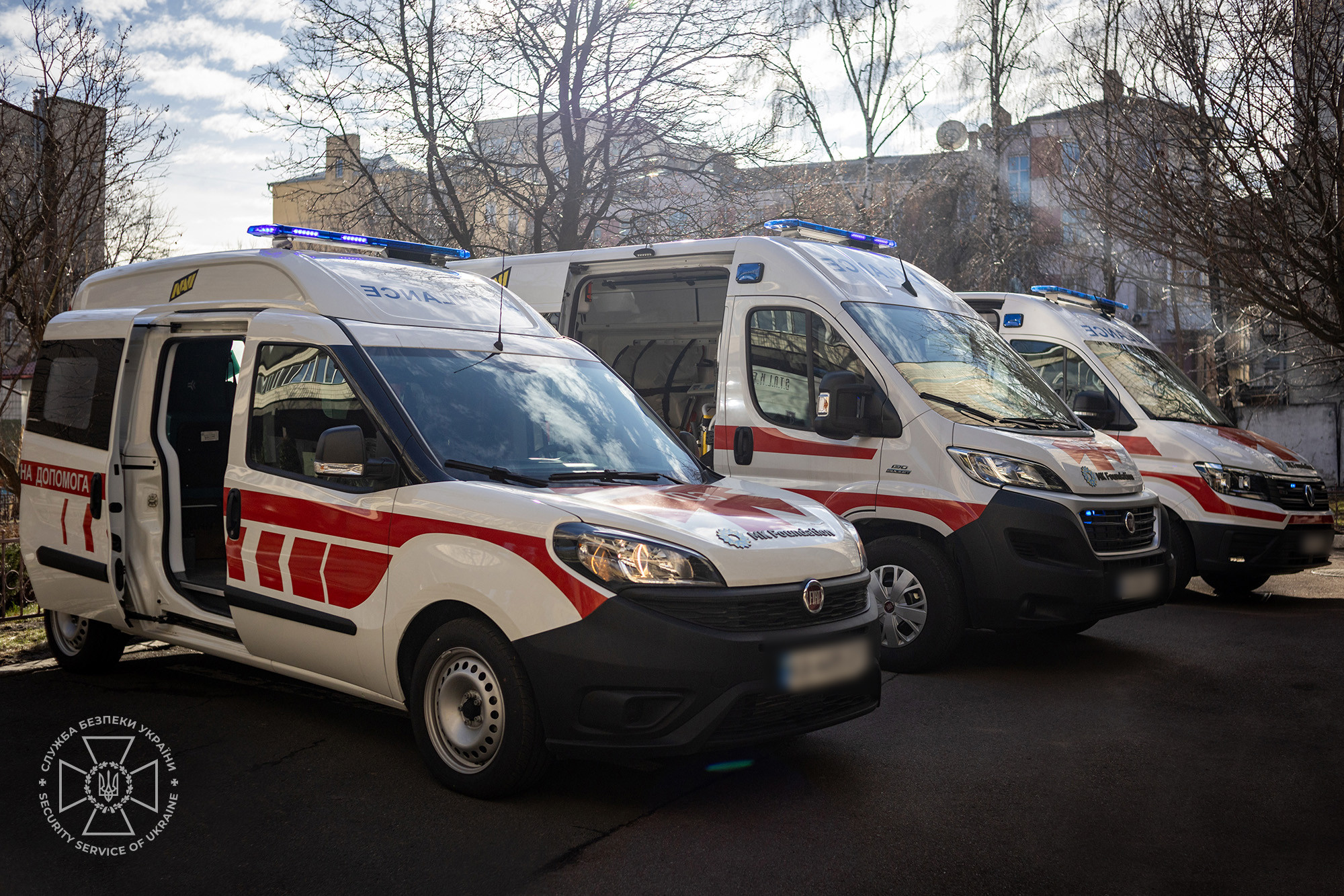 Військово-медичне управління Служби безпеки України отримало від благодійної організації «МК Фаундейшн» 11 сучасних автомобілів екстреної медичної допомоги. Ці «швидкі» використовуватимуться для транспортування, евакуації, а також надання невідкладної медичної допомоги пораненим і постраждалим військовослужбовцям Сил безпеки та оборони.