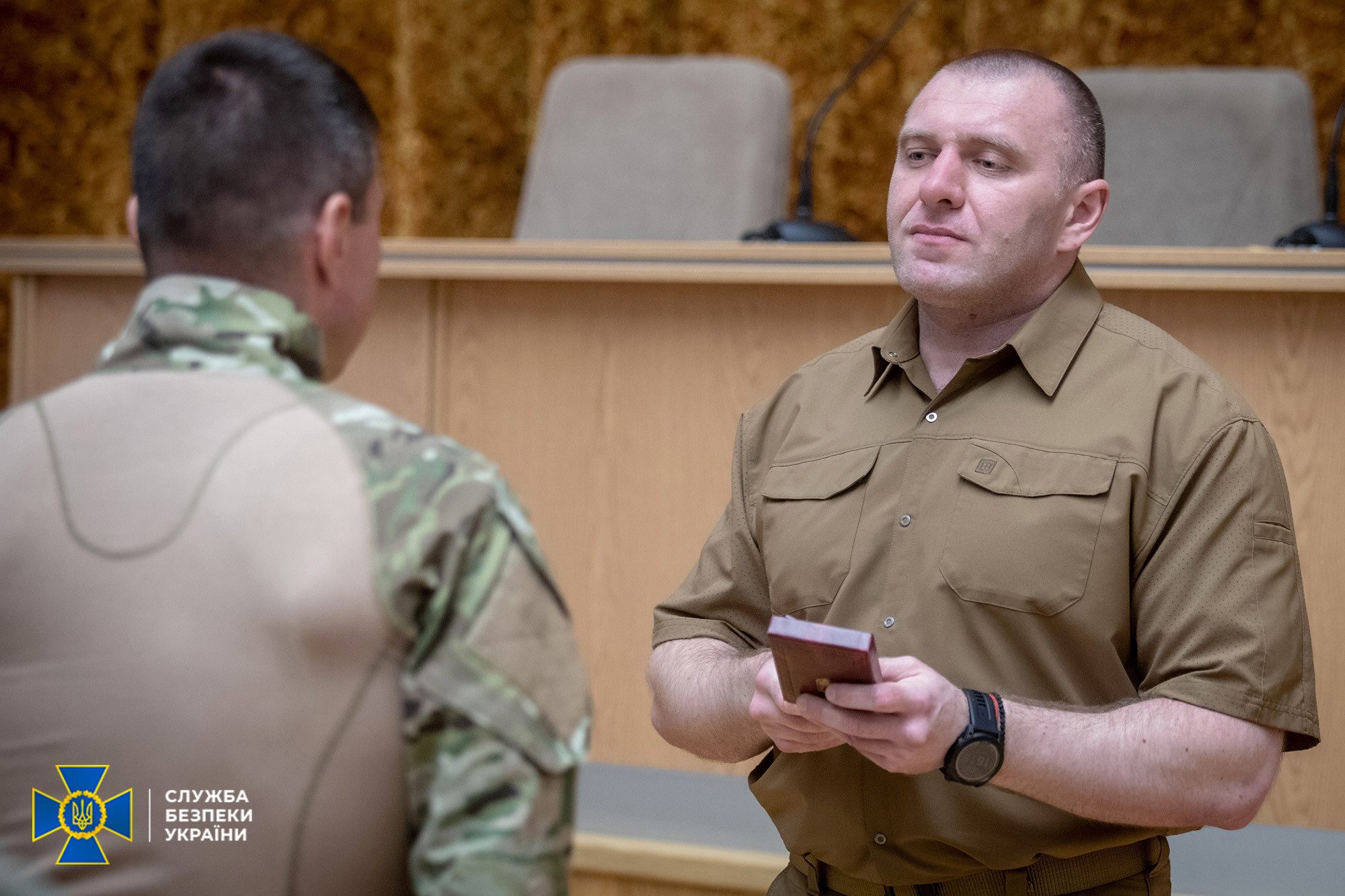 Vasyl Maliuk also presented a medal to a serviceman of the Armed Forces of Ukraine who fights at the front line in one team with the SSU special purpose unit.