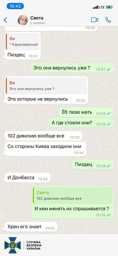 This is confirmed by texting between a contract soldier and an employee of the main directorate of the national guard of russia in Krasnodar Krai.
