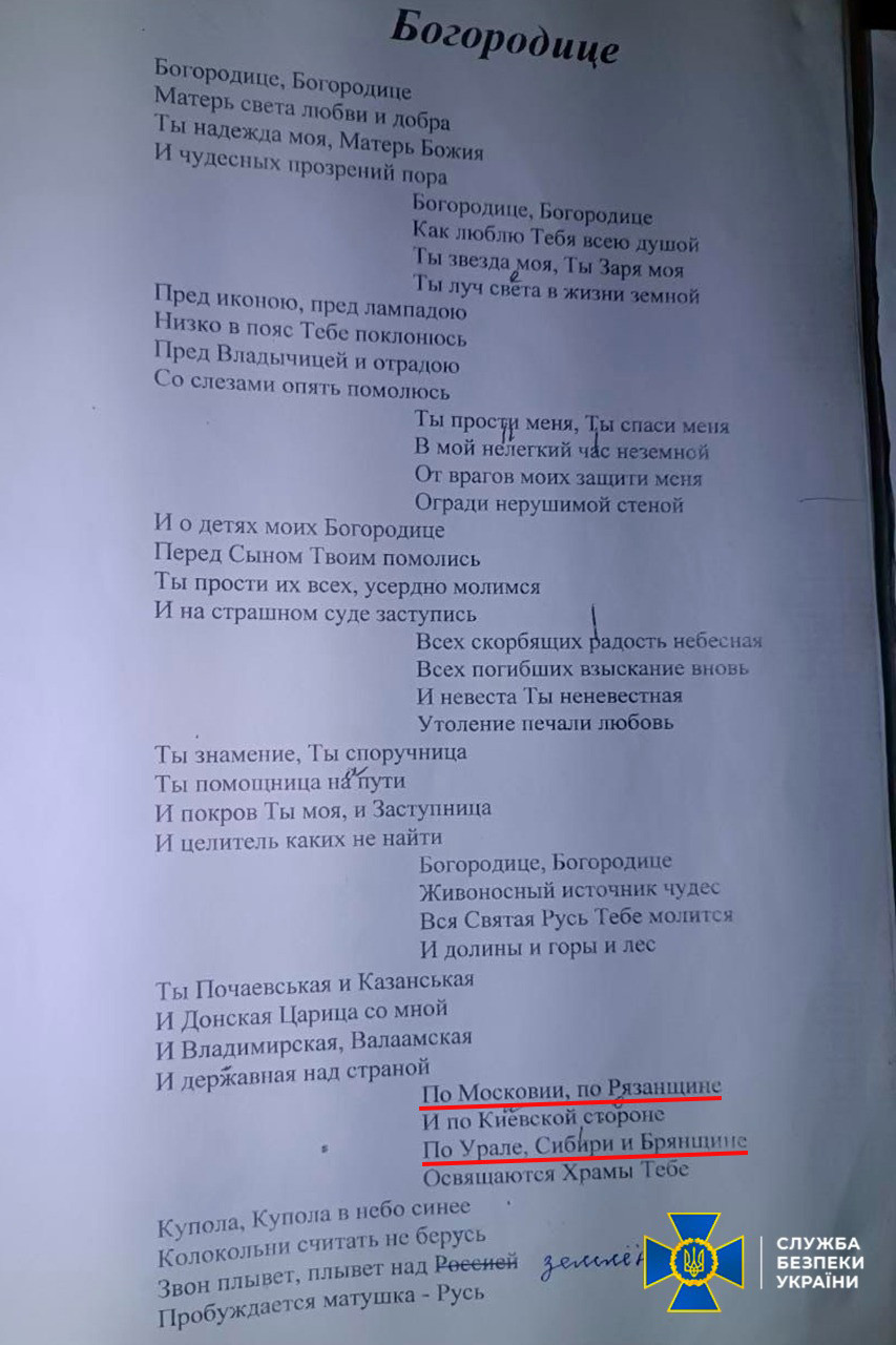 The SSU also found the lyrics of pro-russian songs that glorified the ‘russian land’ and called for ‘awakening of mother Rus’.