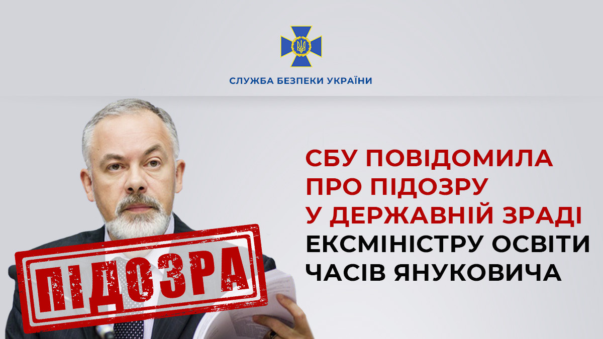SSU notifies ex-minister of education of Yanukovych government of suspicion of high treason
