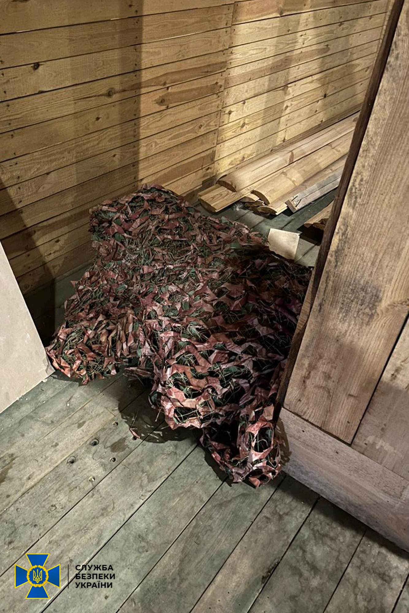 In the attic of the same facility, the SSU found a camouflage net, which is usually used for military purposes: to conceal weapons, equipment and engineering structures.