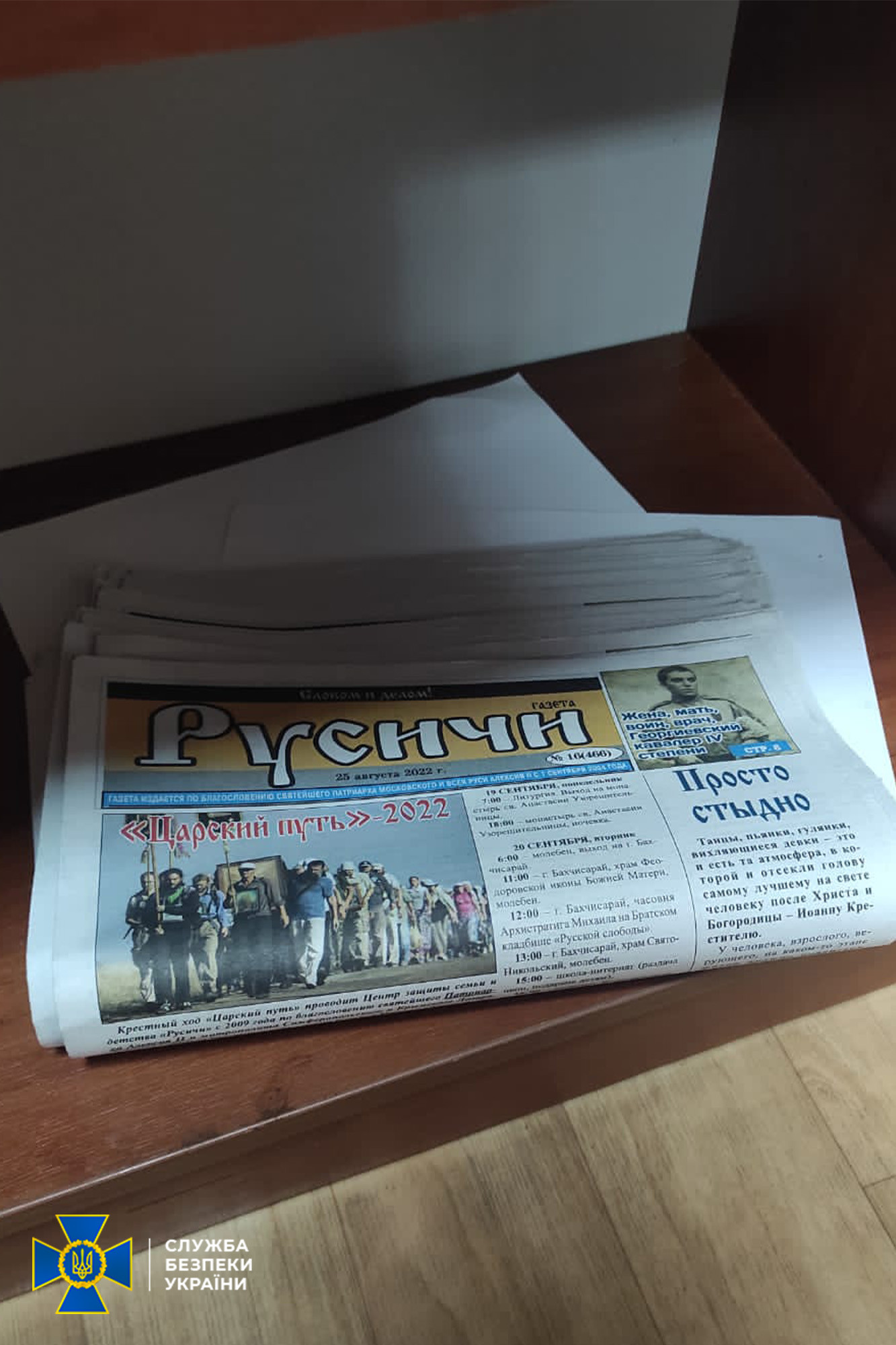 During the inspection, the law enforcement found propaganda material glorifying the aggressor state.