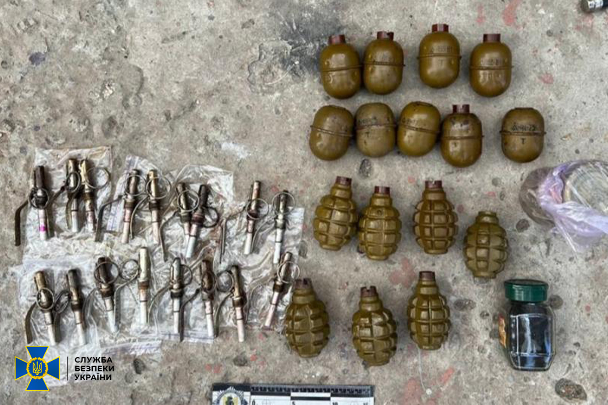 - weapons and ammunition, including 4 pistols with ammunition and 19 F-1 and RGD-5 combat grenades.