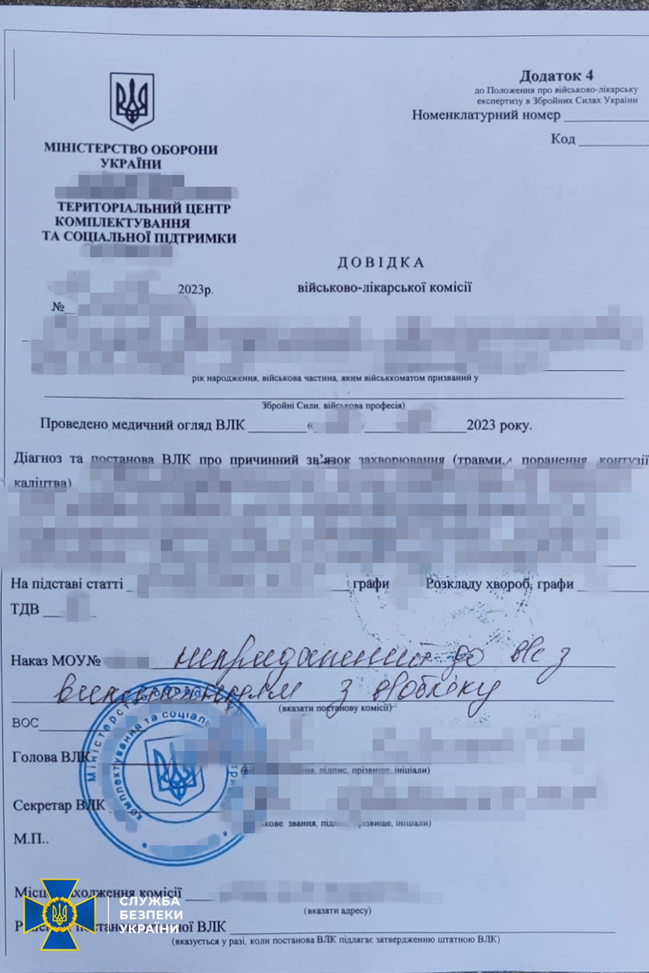 Based on the collected evidence, the officials of the diagnostic medical centre and the military enlistment office and their intermediary have been notified of suspicion under three Articles of the CCU: