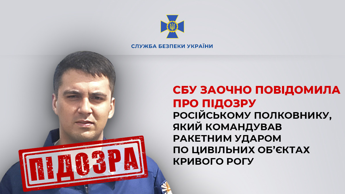 SSU serves notice of suspicion in absentia to russian colonel who commanded missile attack on civilian facilities in Kryvyi Rih