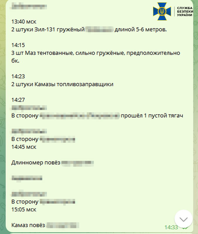 The spy was particularly focused on convoys of heavy and special equipment, e.g. self-propelled artillery pieces, trucks with ammunition and fuel trucks involved in Ukraine’s counteroffensive.