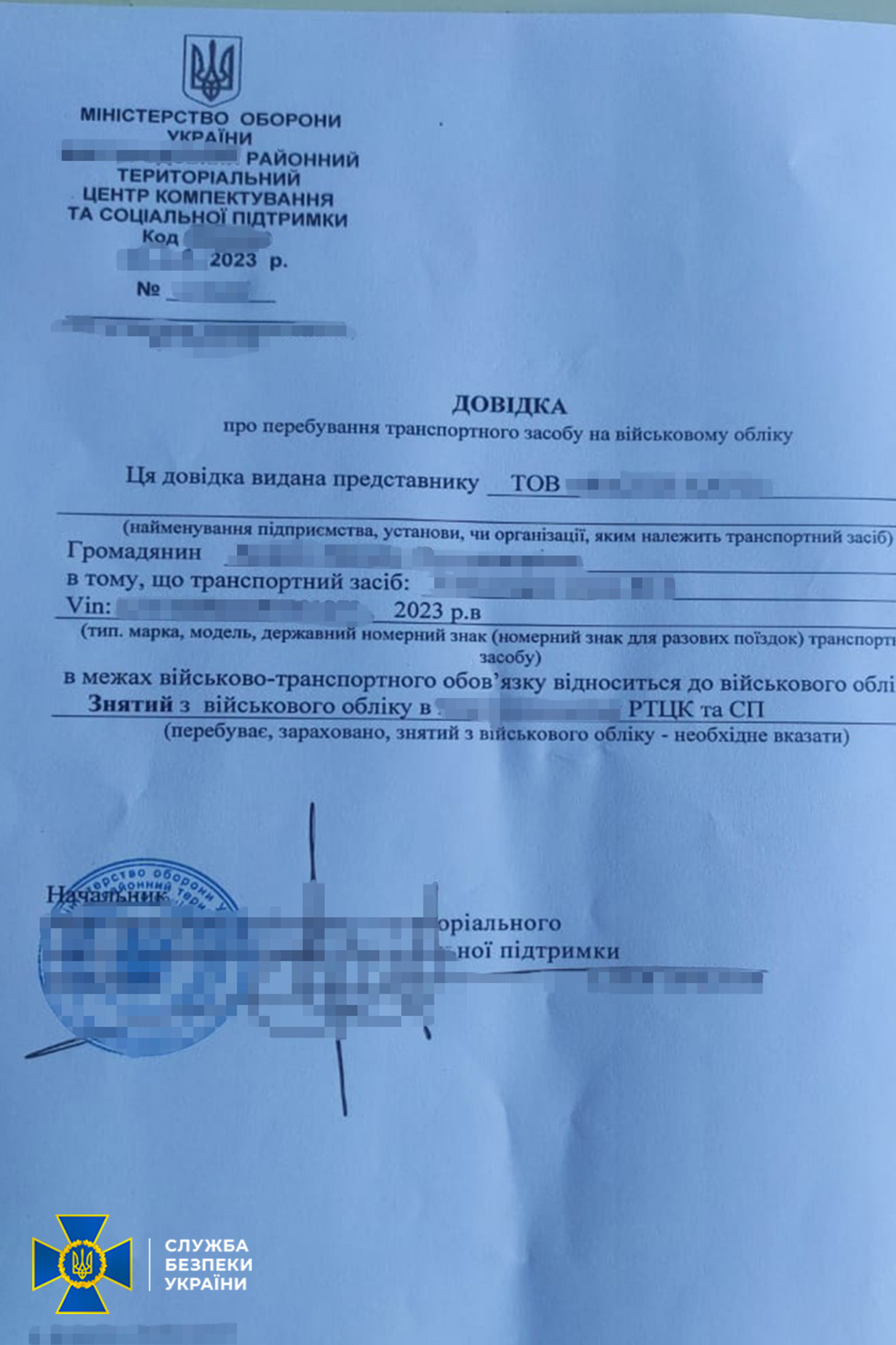 The SSU continues a series of special operations to expose and eliminate mobilization-related corruption. This time, former and current officials have been detained for deregistering vehicles from the military register and selling fake disability certificates to conscripts.