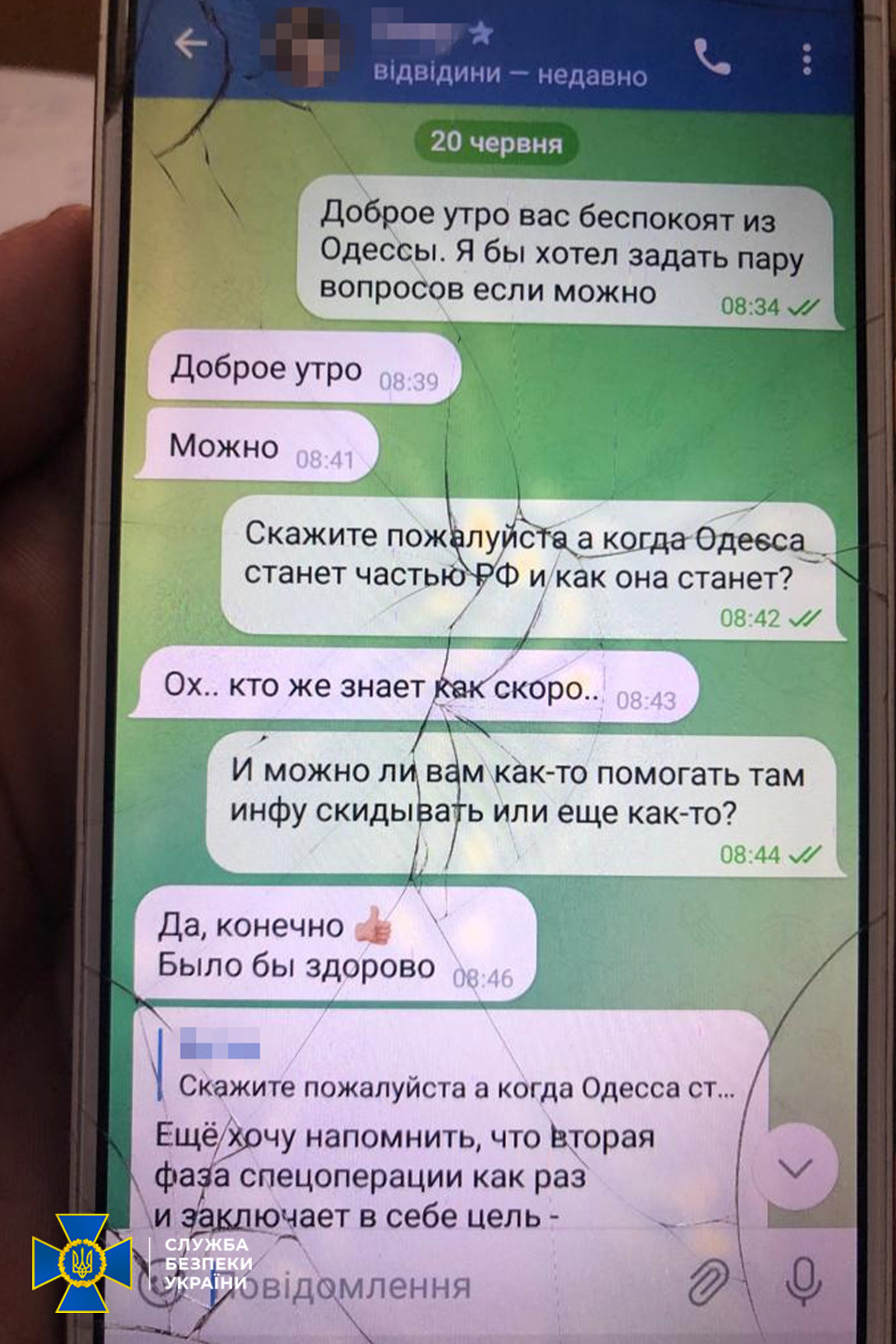 According to the investigation, the traitor was recruited by russian special services to carry out subversive activities in Odesa. For communication, they used a specially created anonymous Telegram channel. Through this channel, the agent received assignments and ‘reported’ on their fulfillment.