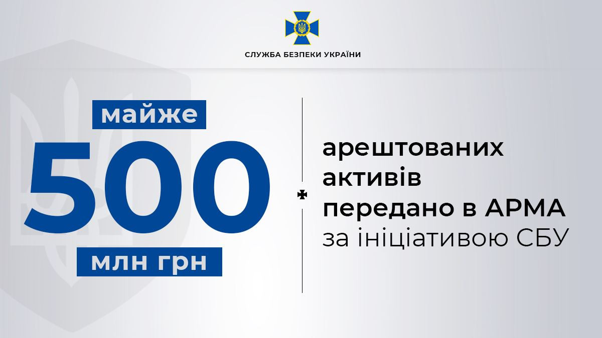 The SSU initiated seizure of monetary assets and property worth UAH 500 mln (USD 13,5 mln) and transfer them to be managed by the National Agency of Ukraine for Detection, Tracing and Management of Assets Derived from Corruption and Other Crimes (ARMA).