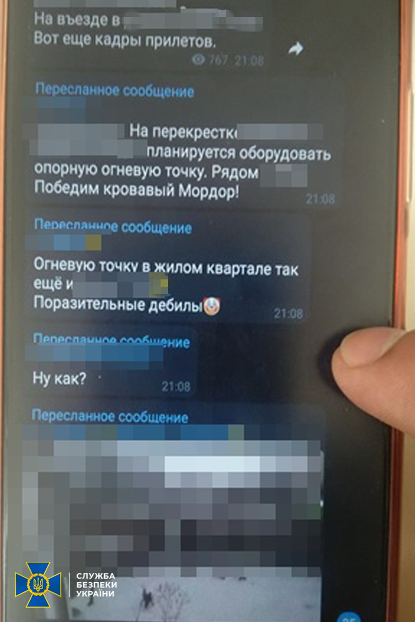 During the search, the SSU found mobile phones with evidence of communication with the enemy via messenger apps.