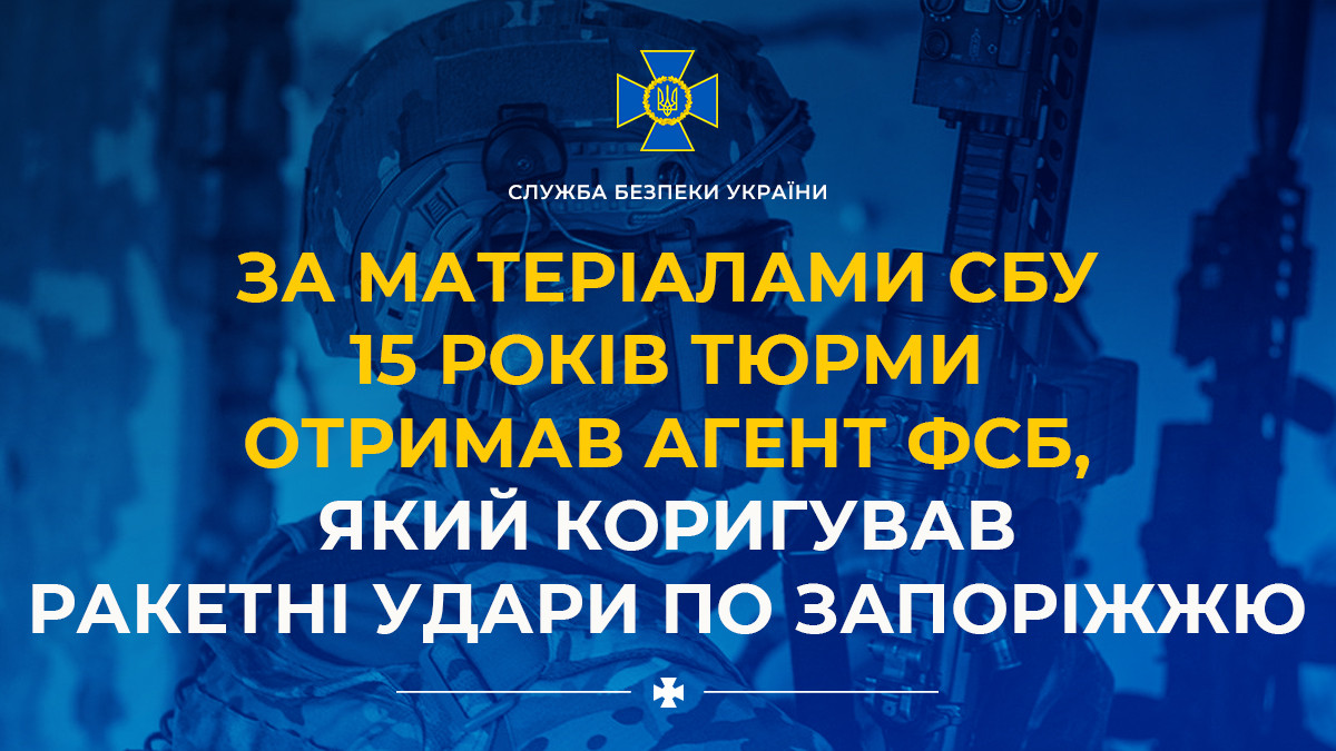 Following SSU investigation, FSB agent sentenced to 15 years in prison for adjusting missile strikes on Zaporizhzhia