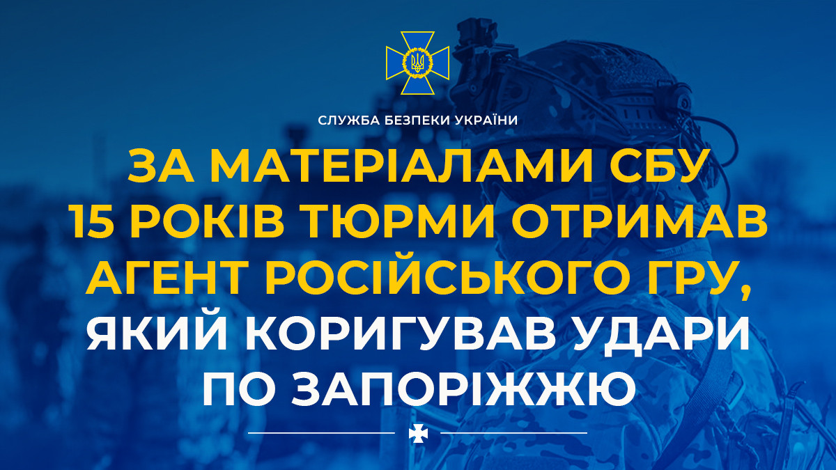 Following SSU investigation, GRU agent sentenced to 15 years in prison for adjusting strikes on Zaporizhzhia