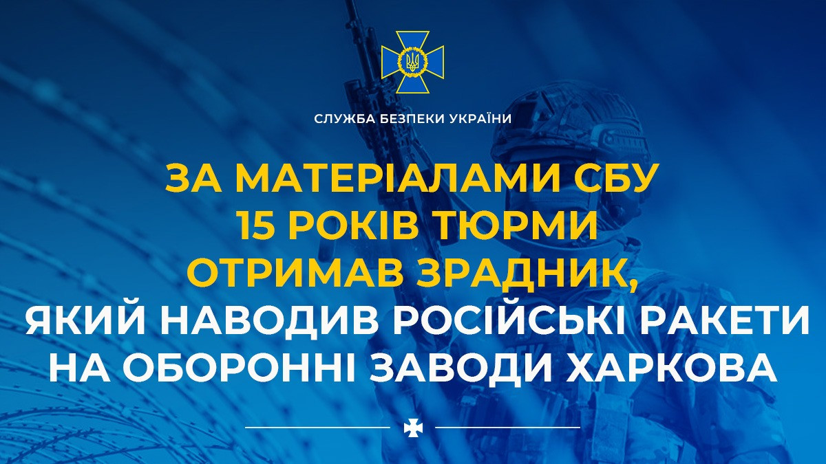 Following SSU investigation, traitor who guided enemy missiles at Kharkiv defence plants sentenced to 15 years in prison
