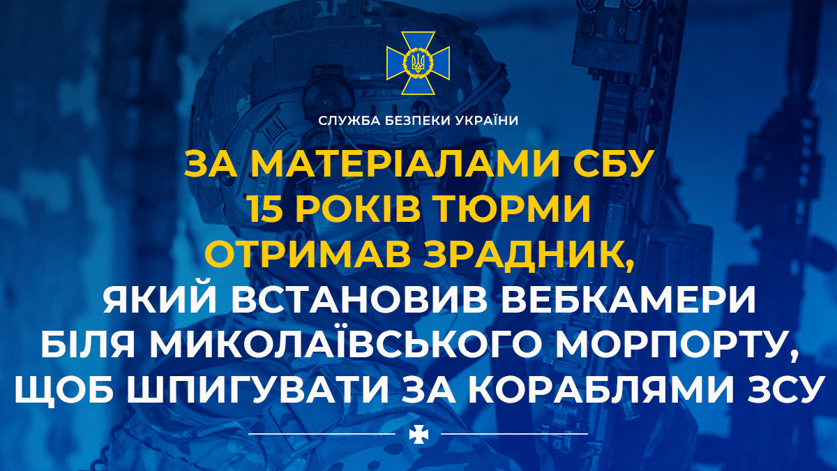 Following SSU investigation, traitor who installed webcams near Mykolaiv port to spy on Ukrainian ships sentenced to 15 years in prison