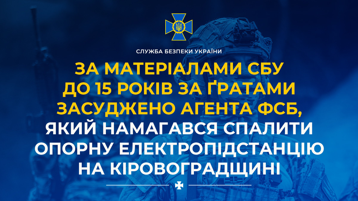 Following SSU investigation, FSB agent sentenced to 15 years in prison for attempt to burn down power substation in Kirovohrad region