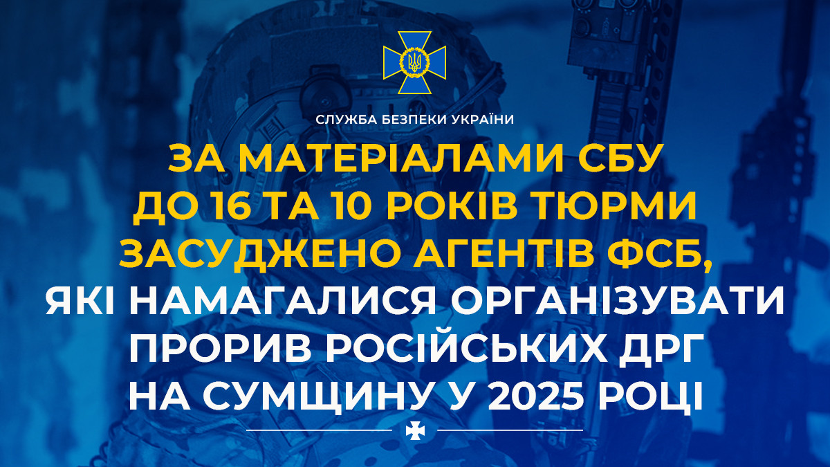 Based on evidence collected by the Security Service, two FSB agents who were preparing a breakthrough by russian sabotage and reconnaissance groups in the direction of Sumy in the spring of 2025 have been convicted to imprisonment.