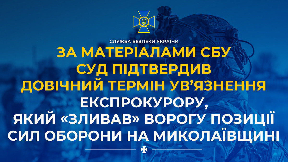 Following SSU investigation, court confirms life sentence for ex-prosecutor who leaked Defence Forces positions in Mykolaiv region to enemy