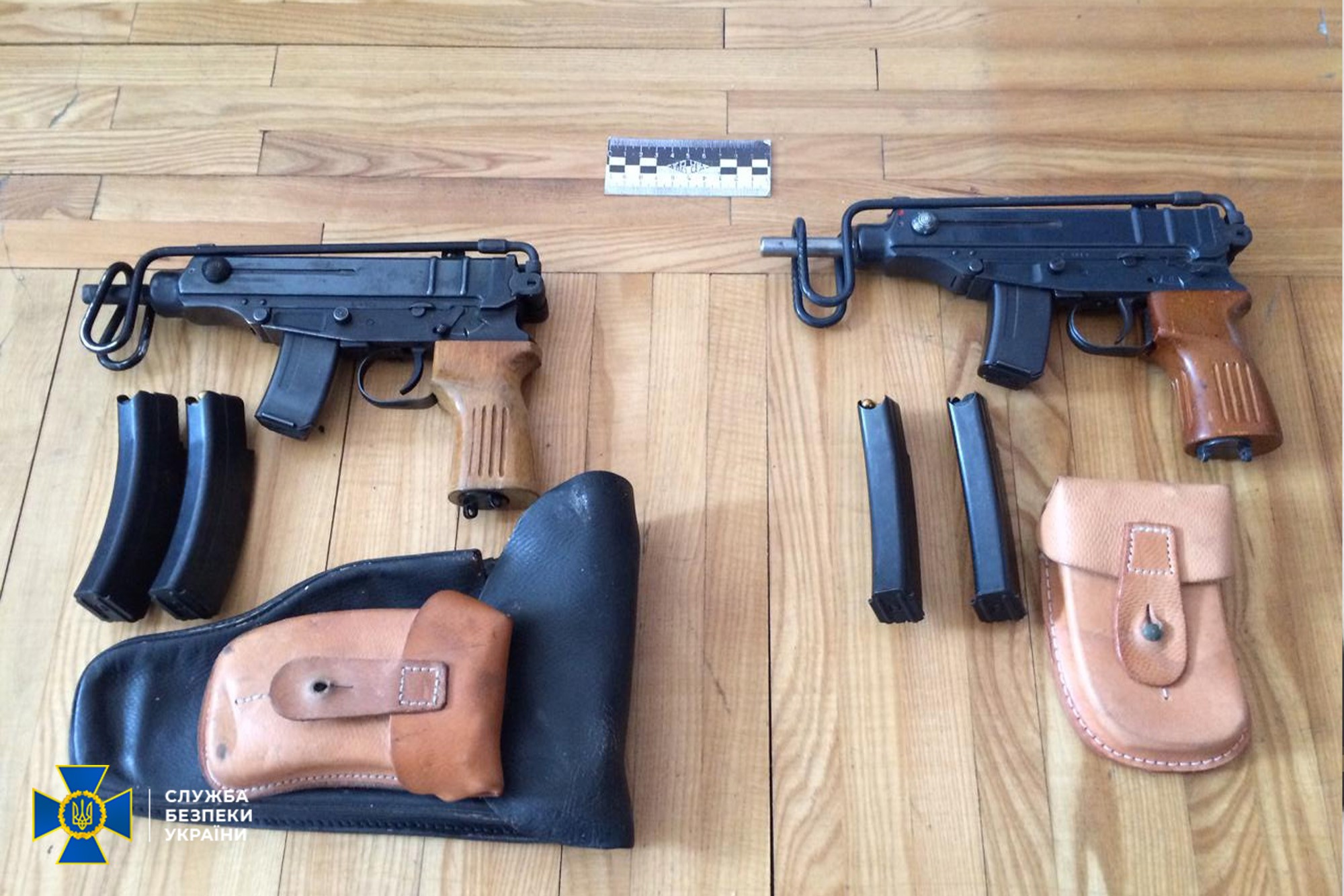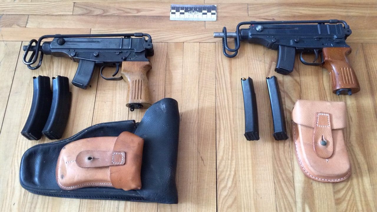 The SSU seized Scorpion submachine guns and pistols with silencers.