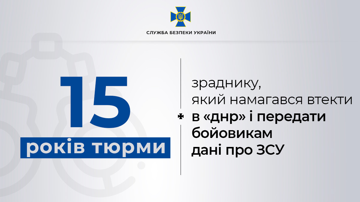 Following SSU’s investigation, traitor who tried to flee to ‘dnr’ and pass information on Ukrainian troops to militants sentenced to 15 years behind bars