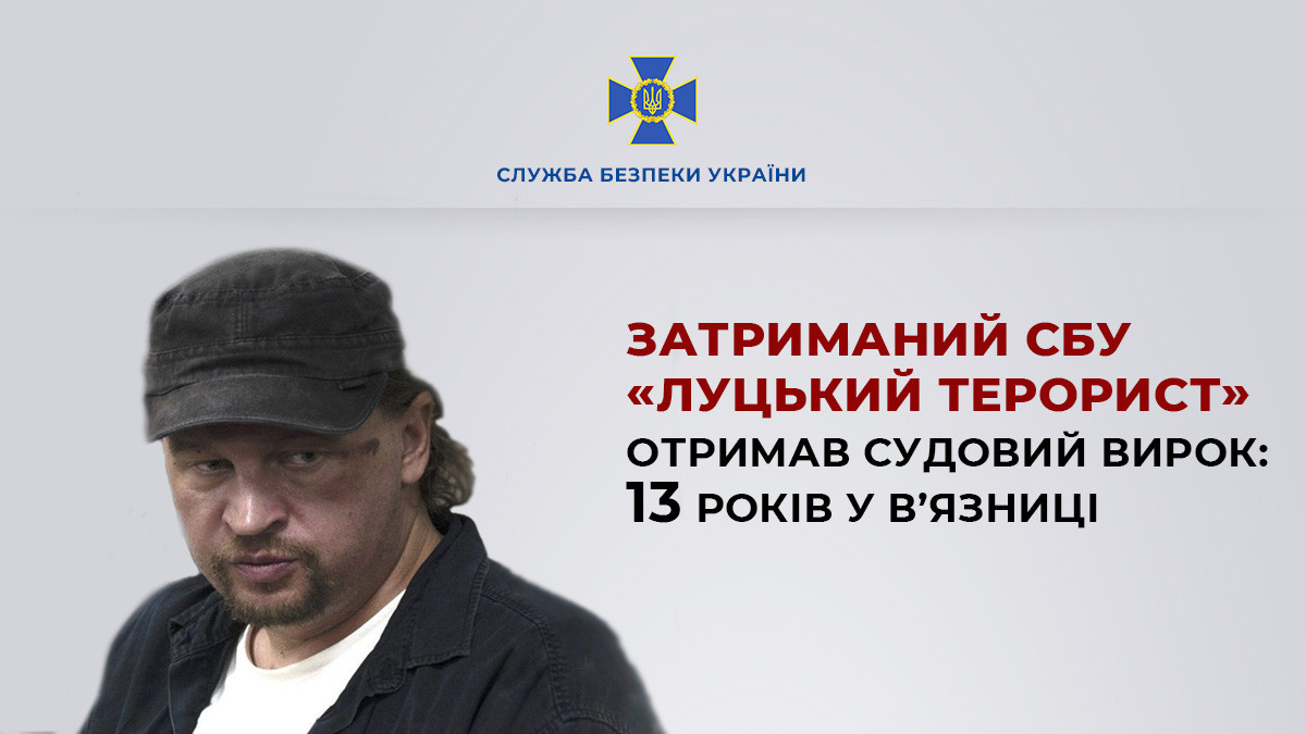 Court sentences ‘Lutsk terrorist’, detained by SSU, to 13 years in prison