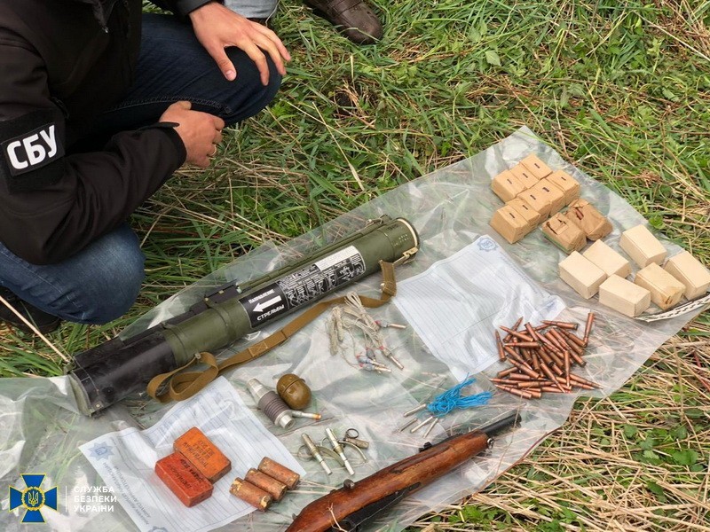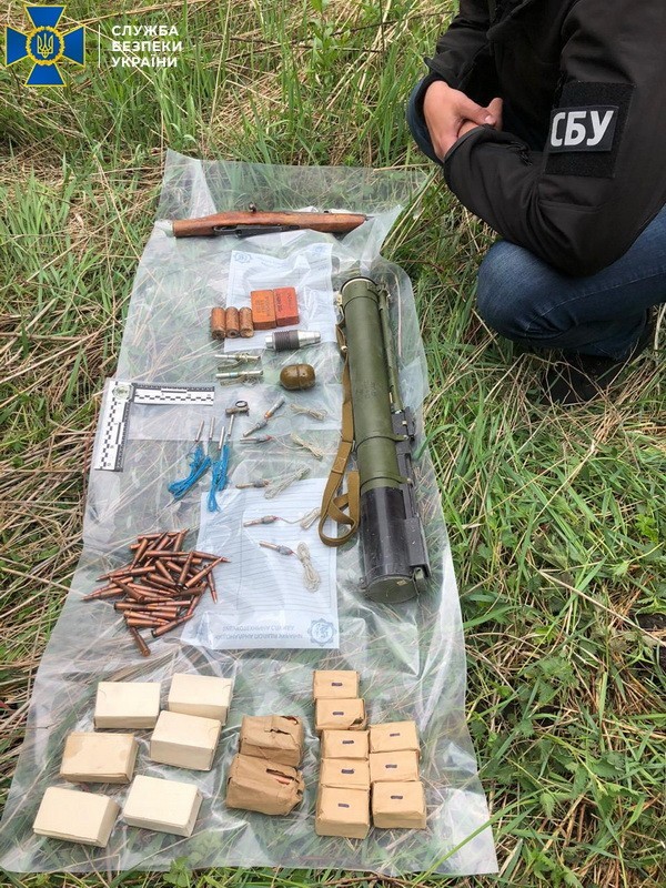 Зі схованки правоохоронці вилучили гранатомет РПГ-22, понад 600 грамів тротилу, 2 гранати РГД-5 та ВОГ-25П, 9 електродетонаторів і мінний підривач, обріз нарізної рушниці системи Мосіна та 420 набоїв різного калібру.