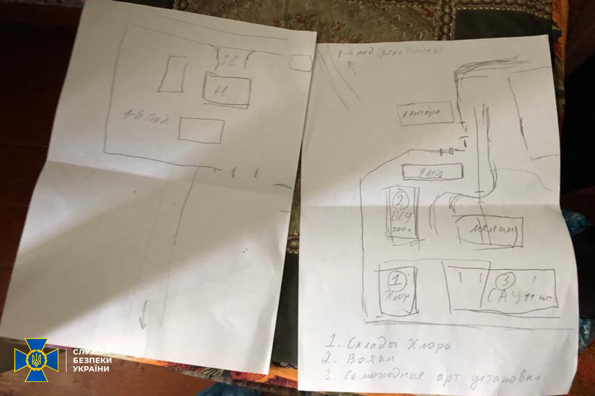 За результатами проведення обшуків за місцями проживання членів агентурної мережі виявлено та вилучено речові докази злочинної діяльності – засоби конспіративного зв’язку, топографічні карти та схеми місцевості з позначеними об’єктами розвідувальних спрямувань, матеріали листування між членами мережі та співробітником так званого «МДБ ЛНР» тощо.