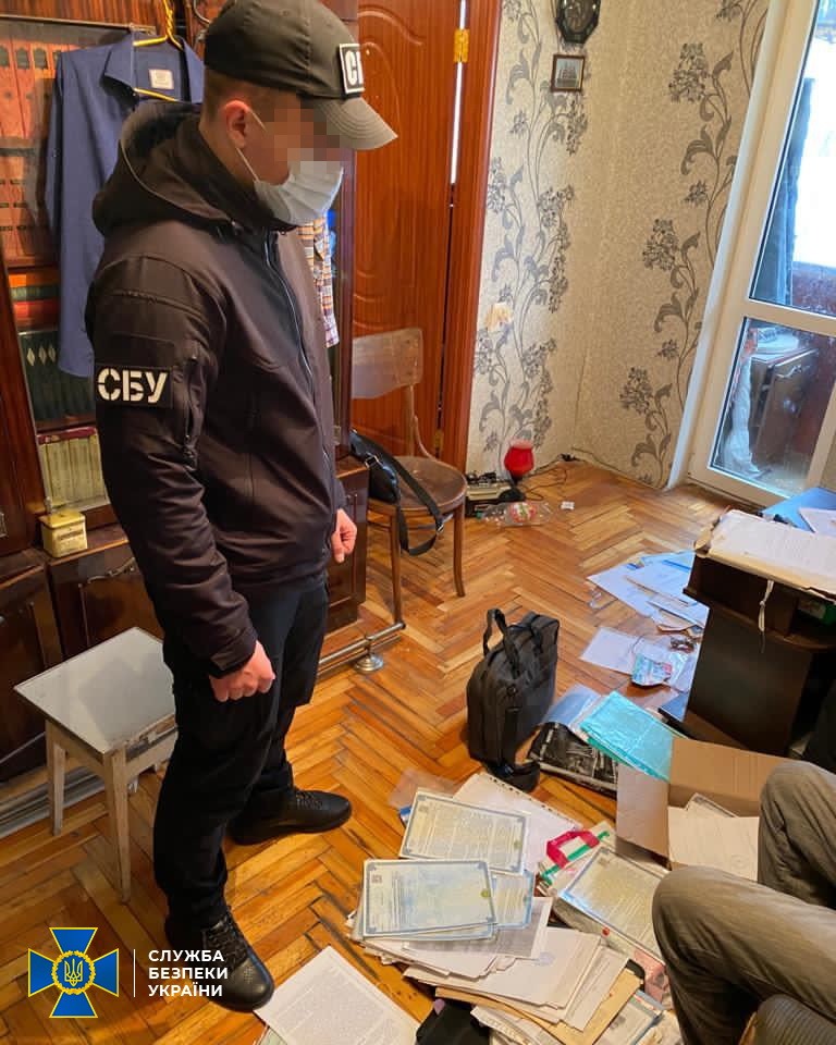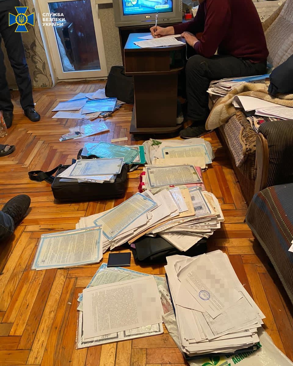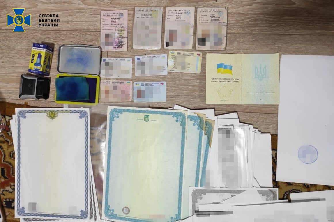 Під час проведення декількох обшуків у фігурантів справи правоохоронці вилучили підроблені печатки державних установ, довіреності та паспорти громадян України, приладдя для виготовлення підроблених документів.