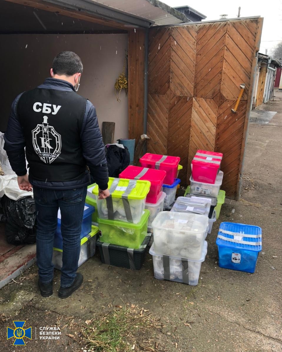 Під час проведення слідчих дій за місцем виробництва та адресами проживання зловмисників, правоохоронці виявили та вилучили понад 2 тонни дорогоцінного каміння. Коштовності, у межах розпочатого провадження за ч. 4 ст. 240 Кримінального кодексу України, направлено на відповідні експертизи.