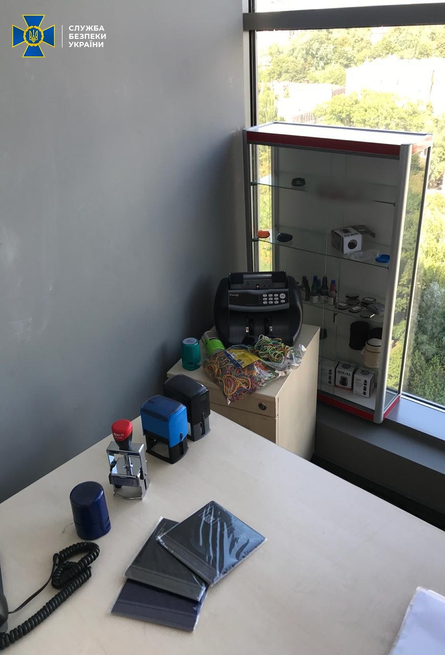 Правоохоронці провели 24 одночасних обшуки, у ході яких вилучили понад 60 печаток підприємств із ознаками фіктивності, мобільні телефони, флеш-носії, жорсткі диски, чорнові записи та первинну фінансово-господарську документацію, які доводять проведення оборудки. В одного із кур’єрів конвертцентру вилучено гроші у різній валюті приблизно на 500 тисяч у гривневому еквіваленті.