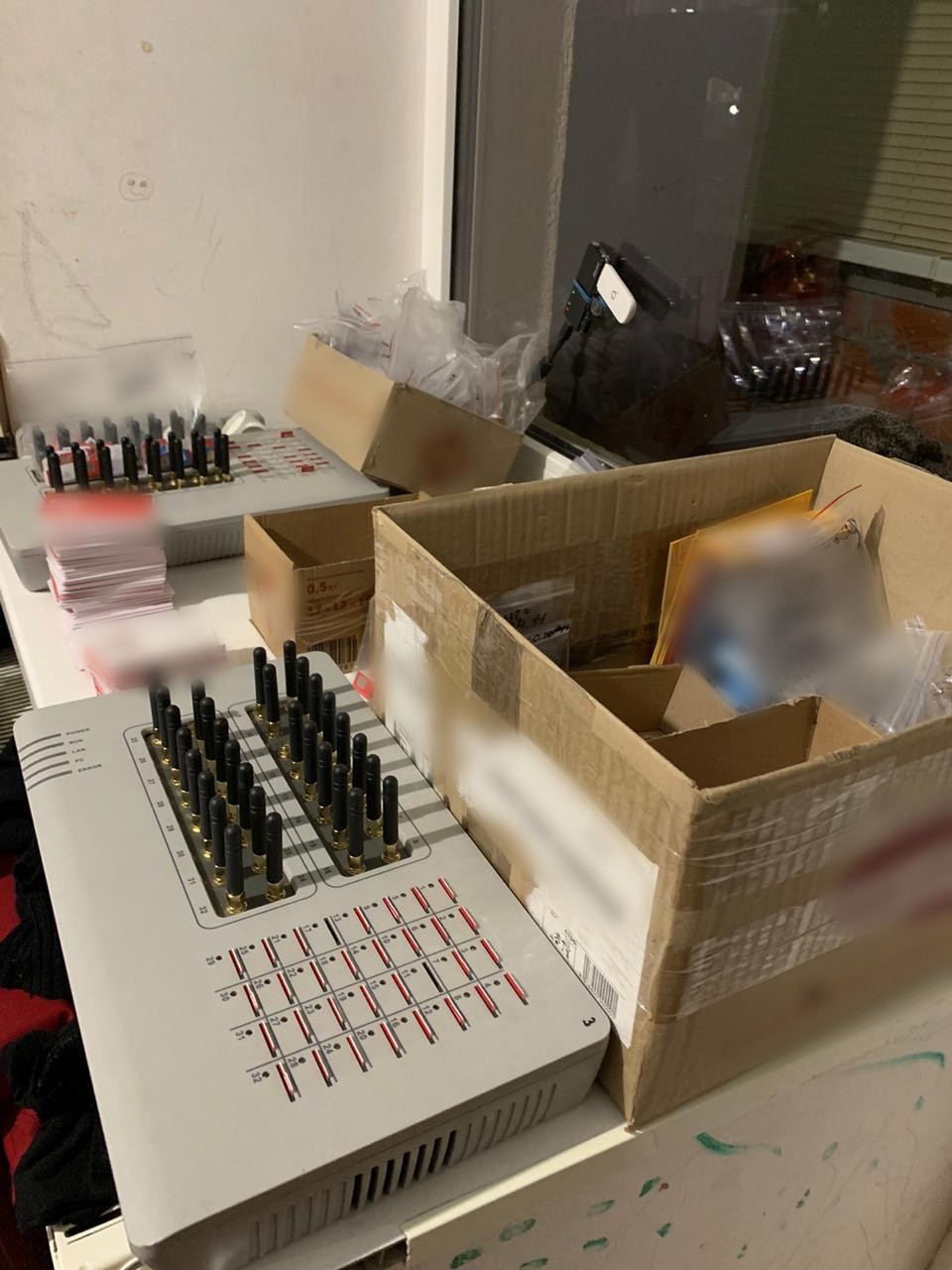 Під час проведення обшуків правоохоронці вилучили комп’ютерну техніку із встановленим спеціалізованим програмним забезпеченням, GSM-шлюзи та сім-бокси, майже 25 тисяч сім-карток провідних українських мобільних операторів. Також виявлено апаратне мережеве обладнання, зокрема роутери, модеми, сервери, яке було задіяне для здійснення протиправної діяльності. Співробітники СБУ вже встановили ІР-адреси серверів, зареєстрованих у деяких країнах ЄС, що використовували зловмисники.