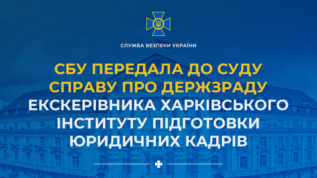 Служба безпеки України передала до суду матеріали справи щодо державної зради колишнього тимчасово виконуючого обов’язки начальника Інституту підготовки юридичних кадрів для СБУ Національного юридичного університету імені Ярослава Мудрого (м. Харків).