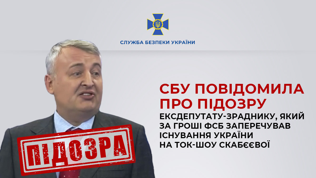 СБУ повідомила про підозру ексдепутату-зраднику, який за гроші фсб заперечував існування України на ток-шоу Скабєєвої