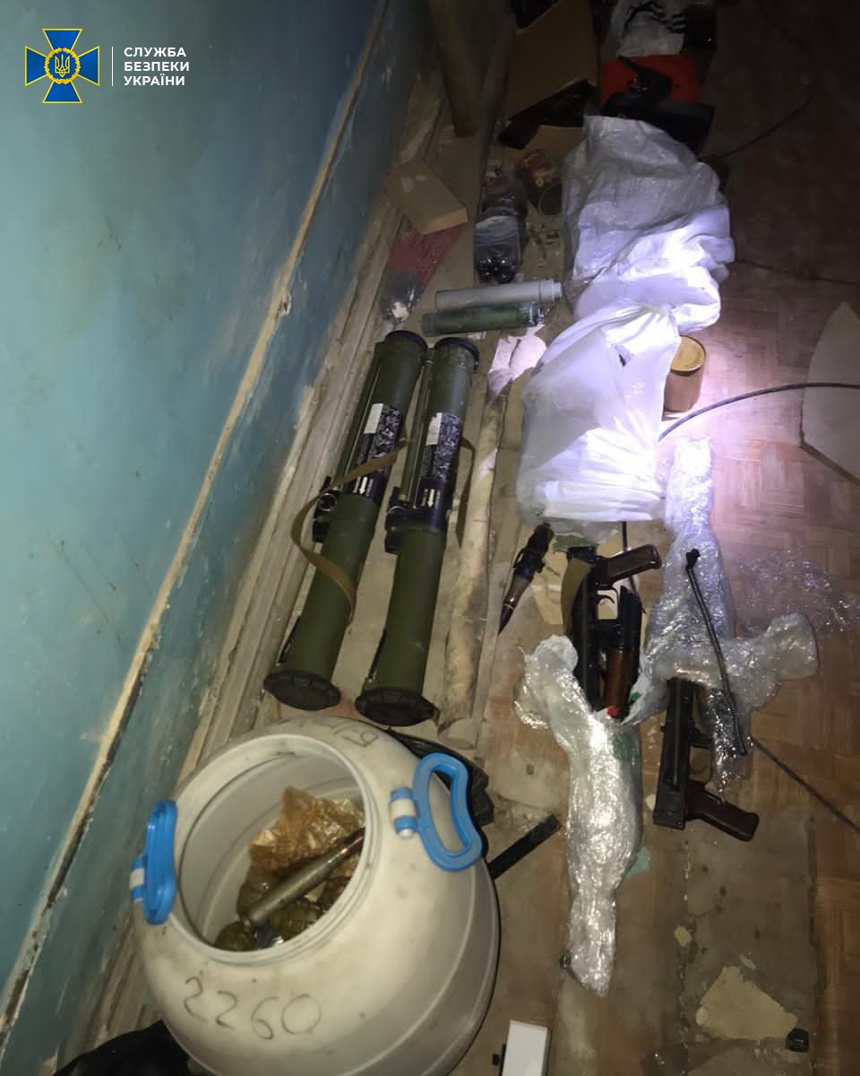 Наразі слідчо-оперативною групою та експертами продовжуються обшуки приміщень та вилучення військових засобів ураження.