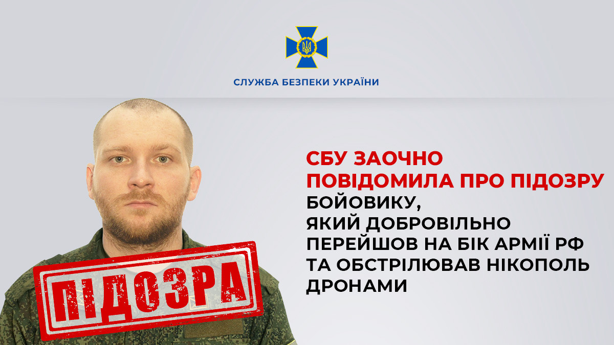 СБУ заочно повідомила про підозру бойовику, який добровільно перейшов на бік армії рф та обстрілював Нікополь дронами