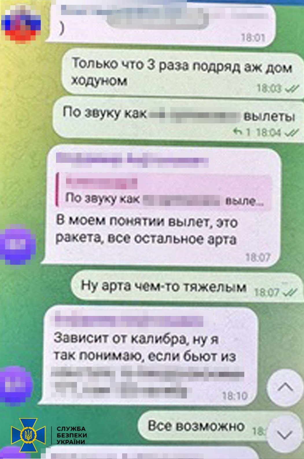 Отримані відомості коригувальник направляв у спеціалізовану групу російської розвідки у месенджері Телеграм.