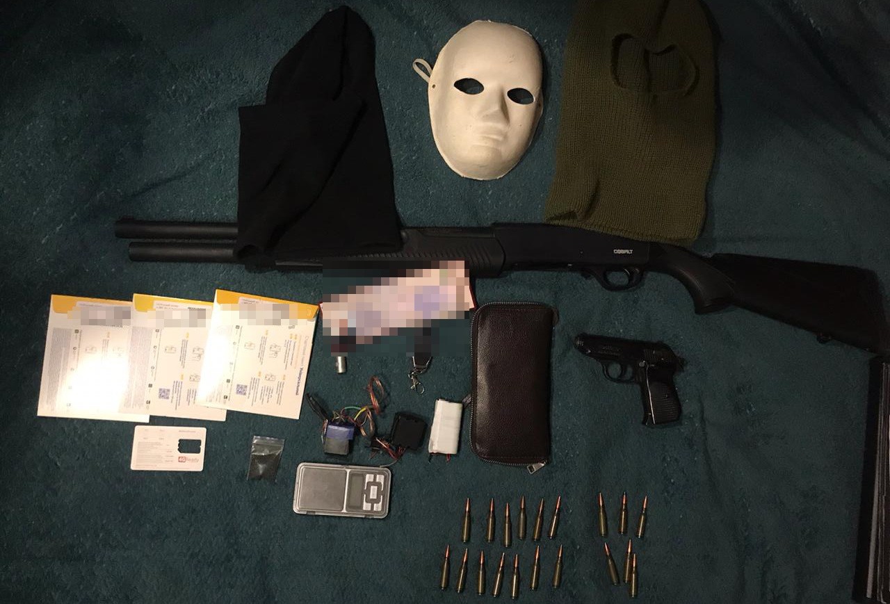 Під час обшуків, проведених за адресами проживання основних фігурантів, правоохоронці вилучили ручний гранатомет, гранату РГО із запалом до неї, 7 саморобних вибухових пристроїв, пістолет «Шмайсер» калібру 9 мм, пристрої для відстрілу гумових набоїв, 70 набоїв різного калібру, розфасовані наркотичні засоби, сім-картки кількох мобільних операторів, телефони, комп’ютерну техніку.