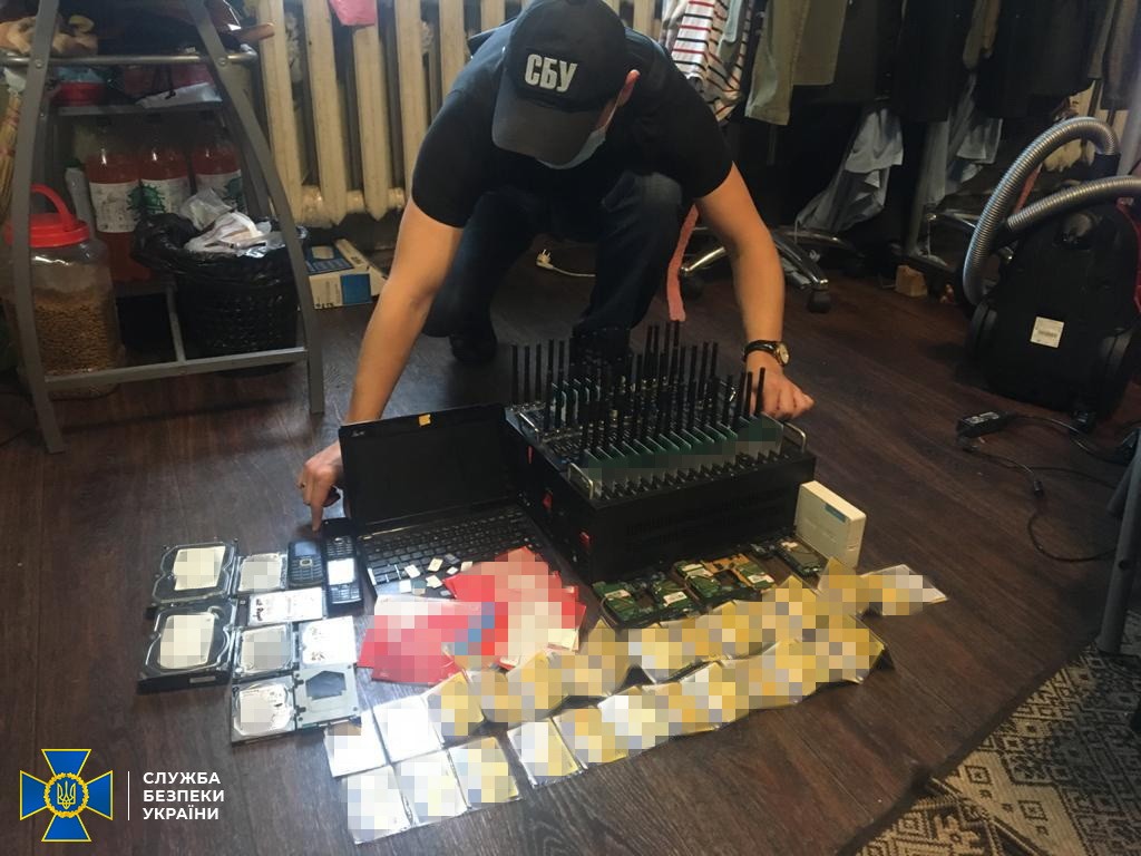 Під час проведення обшуків правоохоронці виявили та вилучили комп’ютерну техніку зі встановленим спеціалізованим програмним забезпеченням, телекомунікаційне обладнання. Зокрема, 4 GSM-шлюзи ємністю 32 канали кожен, 3 сім-банки ємністю 128 каналів, 3 сім-банки ємністю 32 канали, 5 VoIP-шлюзів ємністю 32 канали. Також вилучено понад 6 тисяч SIM-карток, чорнові записи реєстрації користувачів соціальних мереж, які розміщували матеріали провокаційного характеру на шкоду інформаційній безпеці нашої держави.