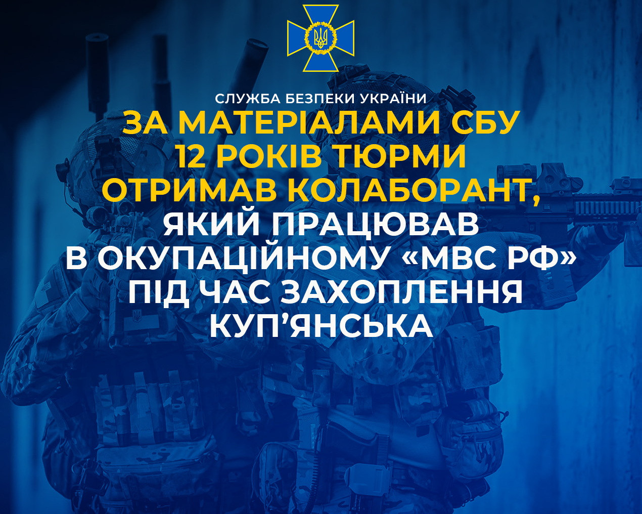 За матеріалами СБУ 12 років тюрми отримав колаборант, який працював в окупаційному «мвс рф» під час захоплення Куп’янська
