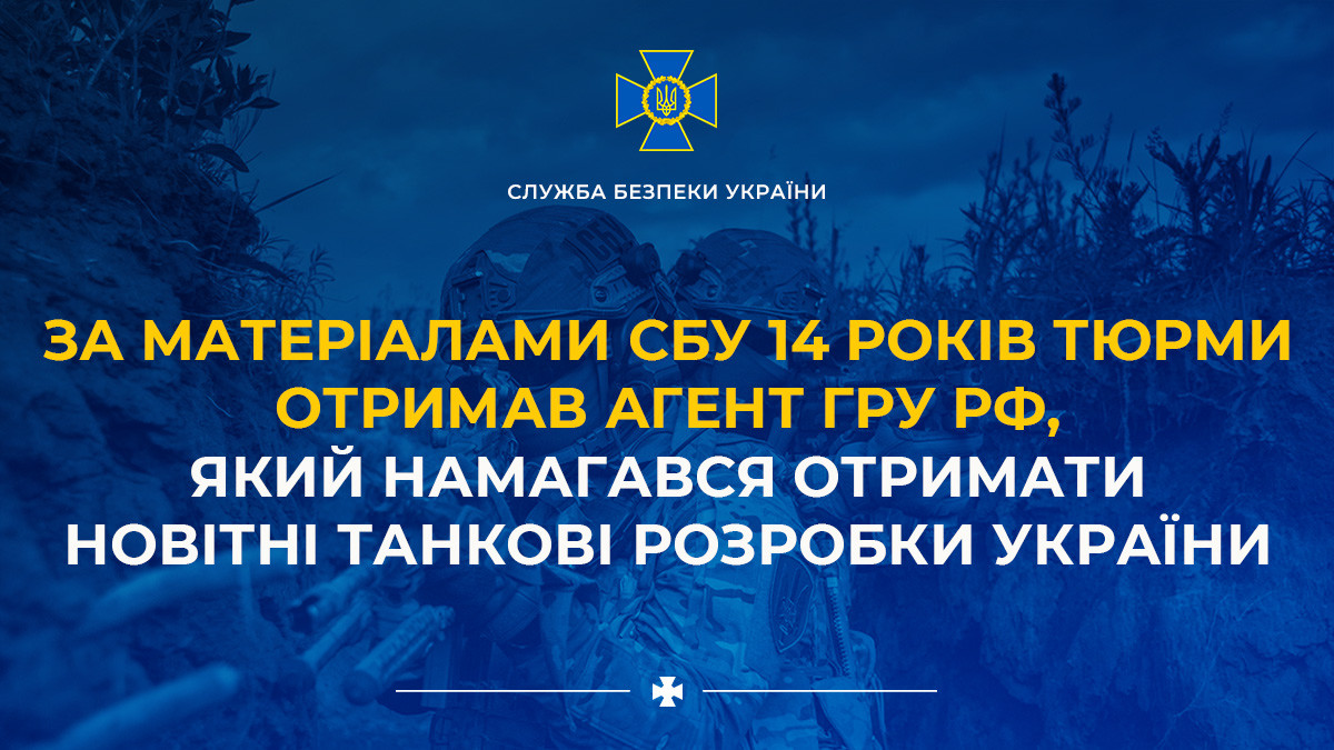 За матеріалами СБУ 14 років тюрми отримав агент гру рф, який намагався отримати новітні танкові розробки України