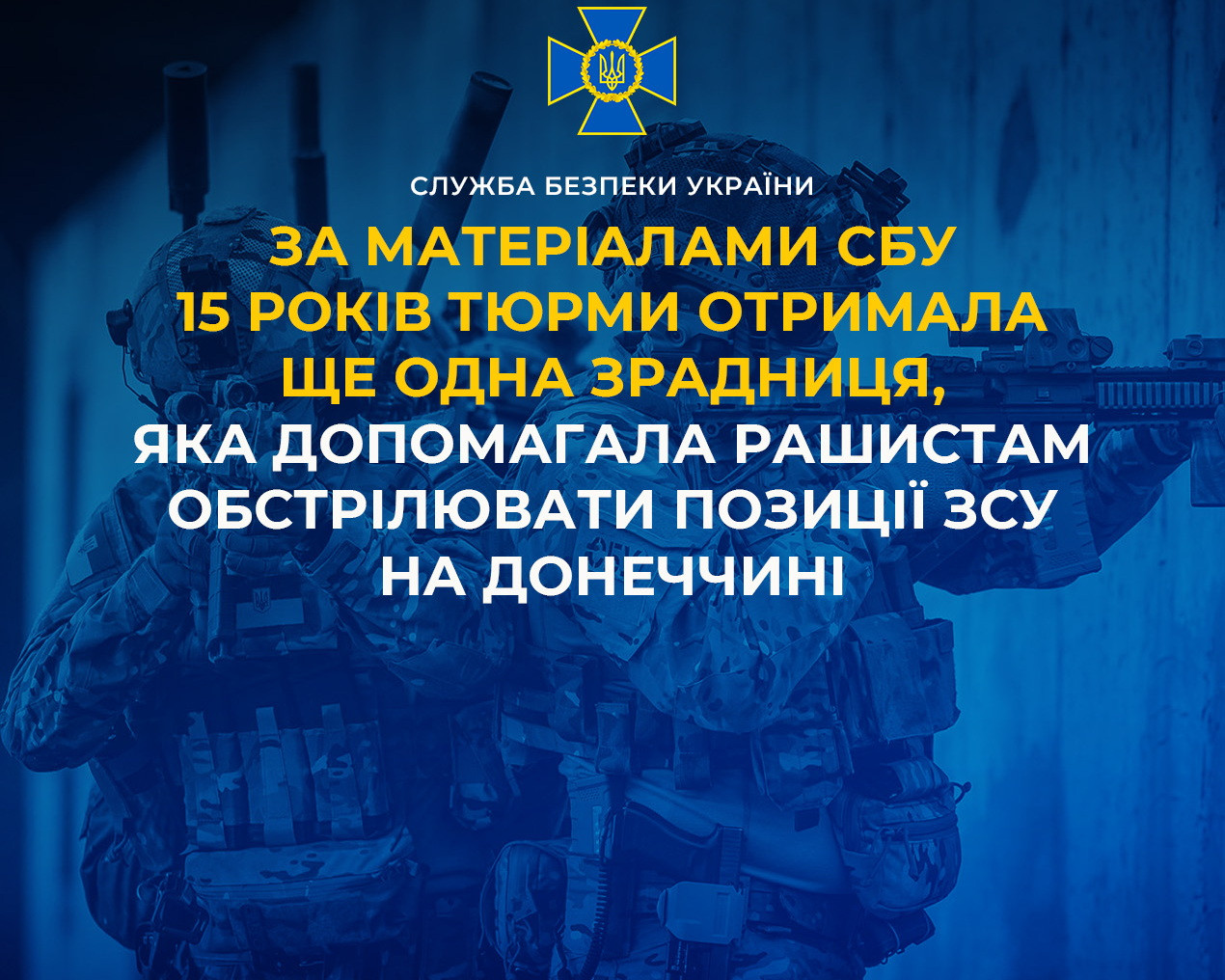 За матеріалами СБУ 15 років тюрми отримала ще одна зрадниця, яка допомагала рашистам обстрілювати позиції ЗСУ на Донеччині
