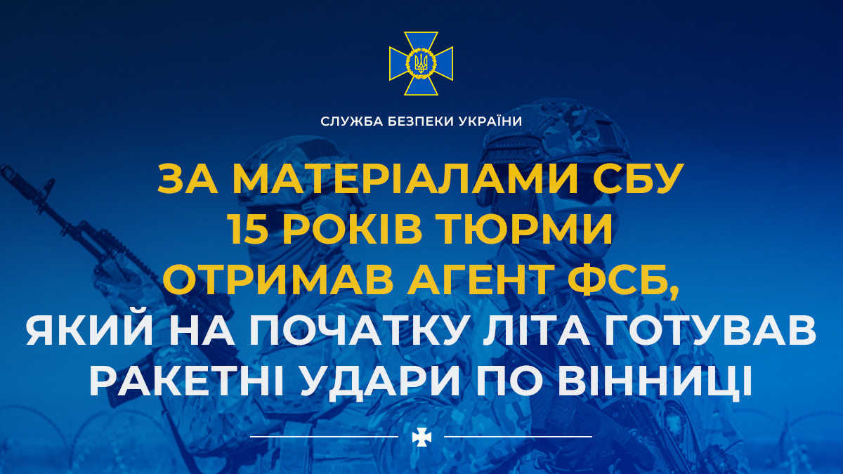 За матеріалами СБУ 15 років тюрми отримав агент фсб, який на початку літа готував ракетні удари по Вінниці
