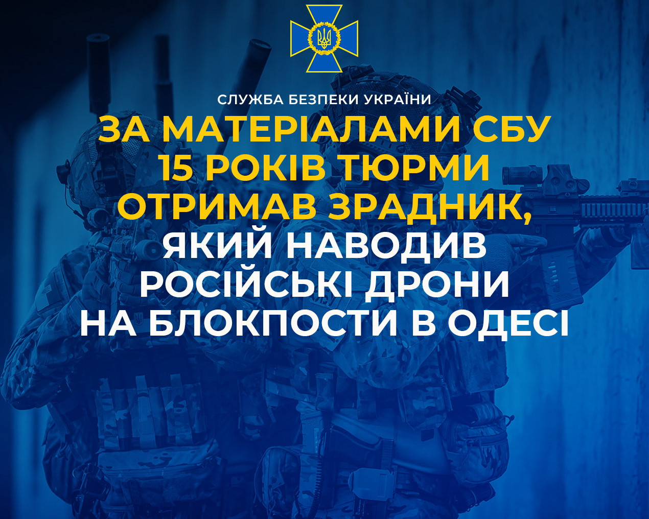 За матеріалами СБУ 15 років тюрми отримав зрадник, який наводив російські дрони на блокпости в Одесі