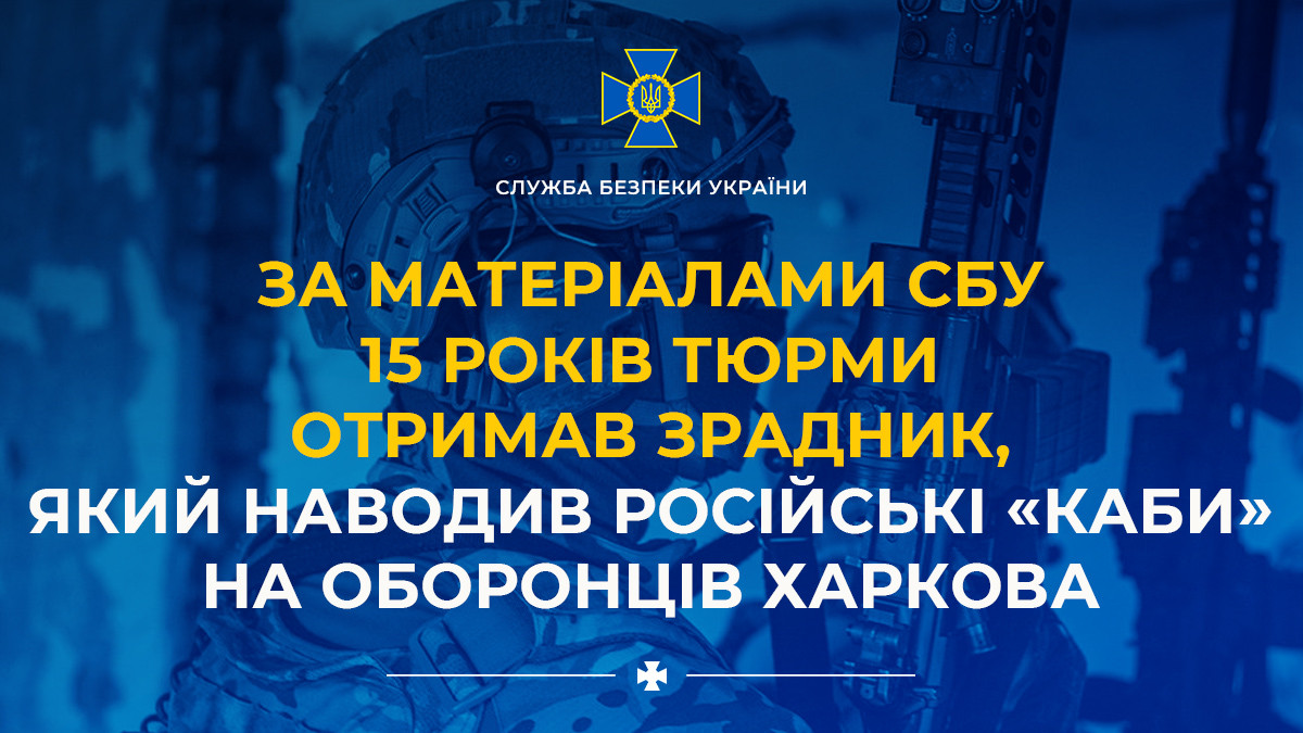 За матеріалами СБУ 15 років тюрми отримав зрадник, який наводив російські «КАБи» на оборонців Харкова